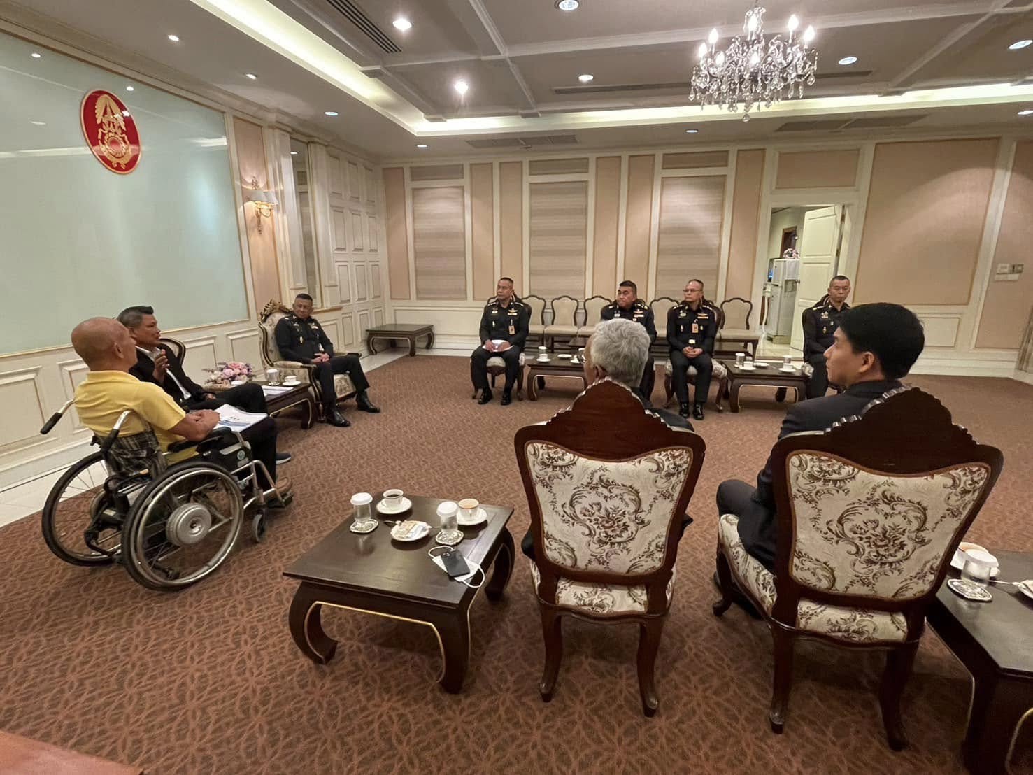 มูลนิธิพัฒนาศักยภาพคนพิการ นำโดย พลอากาศตรีภราดร คุ้มทรัพย์ พร้อมด้วย คุณรณกริษฐ์ เอื้อพิพัฒนากูล ที่ปรึกษาฯ ณ ห้องรับรอง กองบัญชาการกองทัพบก กรุงเทพมหานคร