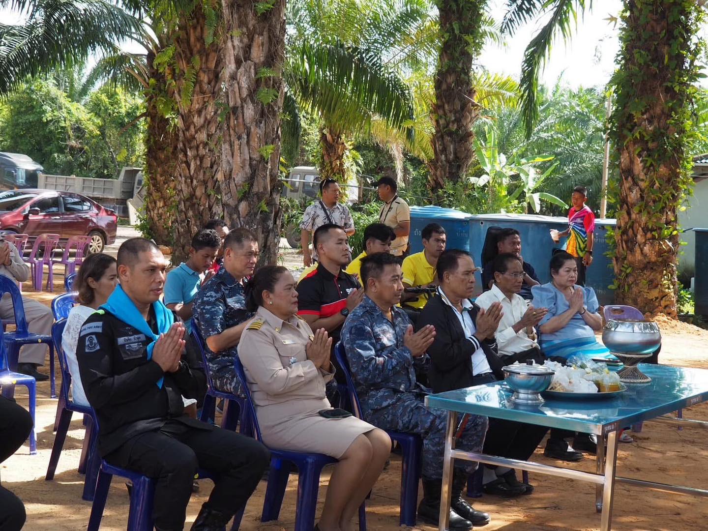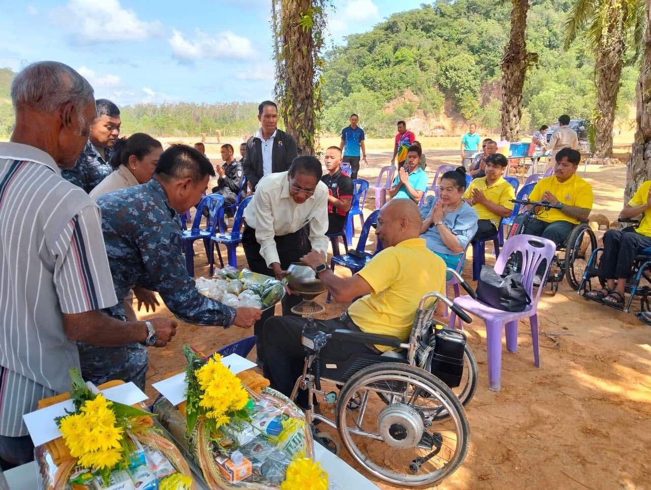 จัดพิธีทำบุญสถานที่สร้างศูนย์พัฒนาศักยภาพคนพิการ จังหวัดชายแดนใต้ โดยมี พลอากาศตรี ภราดร คุ้มทรัพย์ ประธานมูลนิธิพัฒนาศักยภาพคนพิการ เป็นประธานพิธีจุดธูปเทียนบูชาพระรัตนตรัยหน้าโต๊ะหมู่บูชา พร้อมด้วย คุณสมนึก มณีโชค และภริยา, กองกำลังทางอากาศเฉพาะกิจที่ 9 (กกล.ทอ.ฉก.9), ศูนย์เรียนรู้ร่วมเพื่อการพัฒนาศักยภาพคนพิการ จังหวัดชายแดนใต้ และคุณดวงรัศมี รัตนมาลา รองนายกเทศมนตรีตำบลบ่อทอง, หน่วยงานฝ่ายความมั่นคง หน่วยเฉพาะกิจกรมทหารพรานที่ 43 ผู้ใหญ่บ้าน และประชาชนในพื้นที่ร่วมพิธีทำบุญสถานที่สร้างศูนย์พัฒนาศักยภาพคนพิการ จังหวัดชายแดนใต้