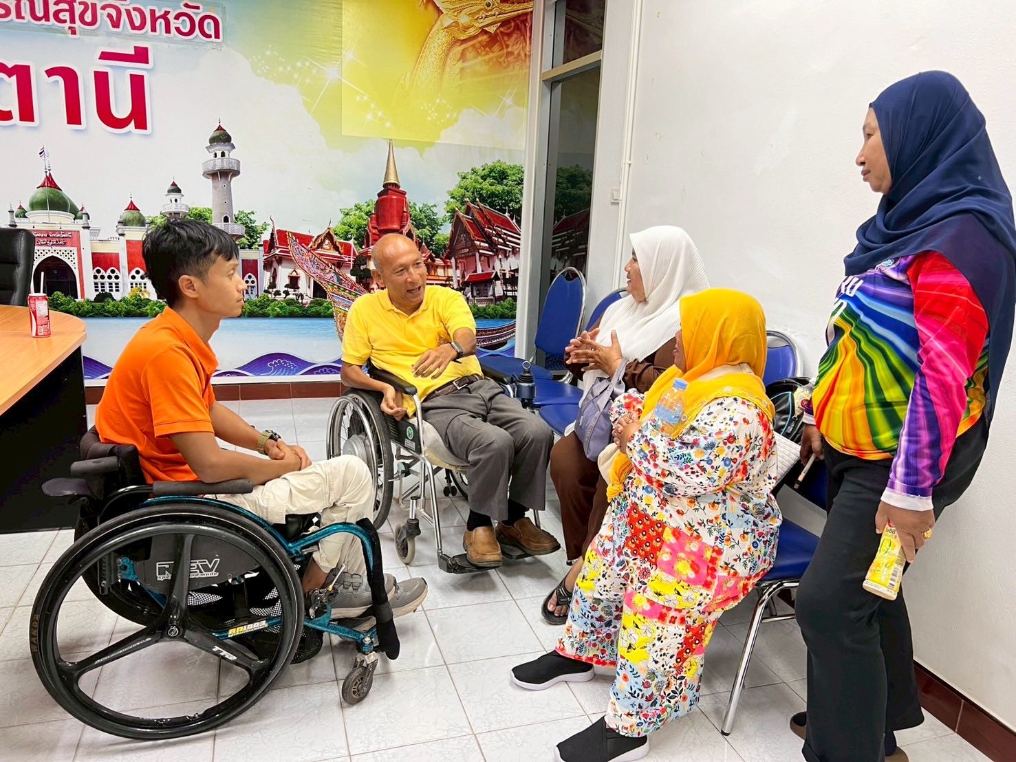 มูลนิธิพัฒนาศักยภาพคนพิการ นำโดย พลอากาศตรีสถิตพงศ์ อธิภิรมย์ศรี ประธานมูลนิธิฯ พร้อมด้วย นายมูฮัมหมัดฮาซัน มะเซ็ง ผู้จัดการศูนย์เรียนรู้ร่วมเพื่อการพัฒนาศักยภาพคนพิการจังหวัดชายแดนใต้ ณ ห้องประชุมสำนักงานสาธารณสุขจังหวัดปัตตานี ได้เข้าประชุมติดตามผลงานร่วมกับ นางปาริชาติ แก้วทองประคำ นักวิชาการสาธารณสุขชำนาญการ สำนักงานสาธารณสุขจังหวัดปัตตานี ในเรื่องการทำงานเชิงสาธารณะ ของผู้ที่ได้รับการจ้างงานคนพิการ จำนวน 9 ท่าน